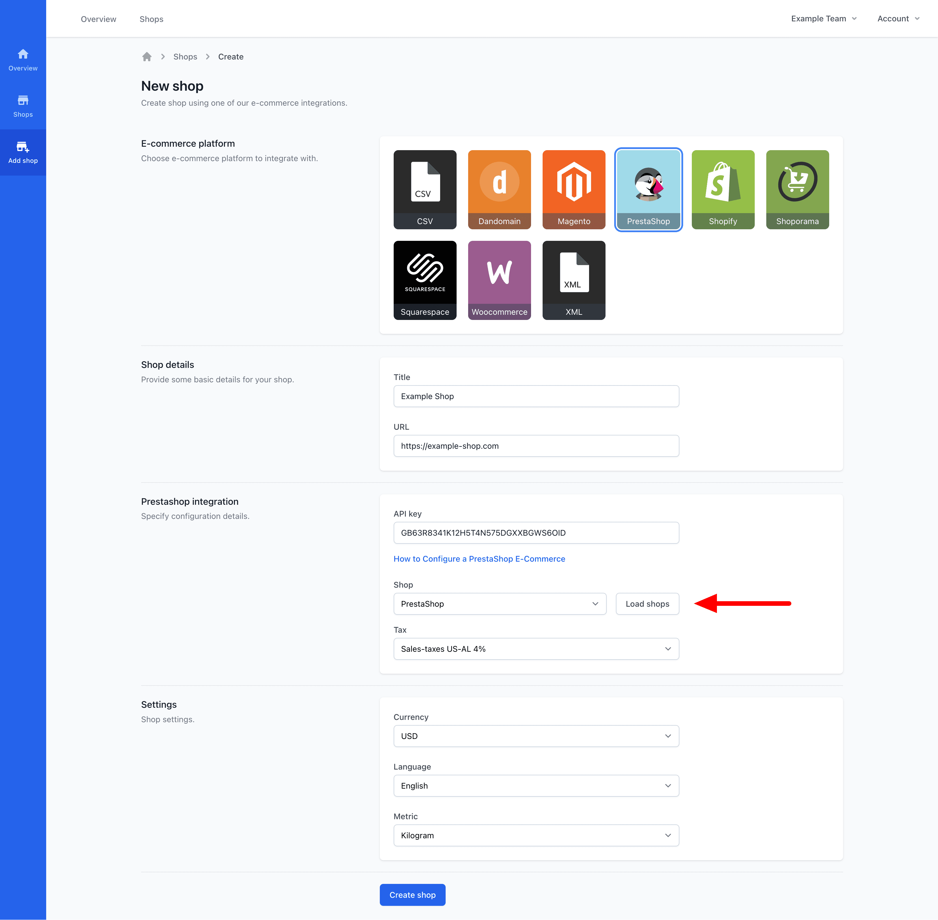 After all the information have been filled out, you can click Create shop and your products will be imported.