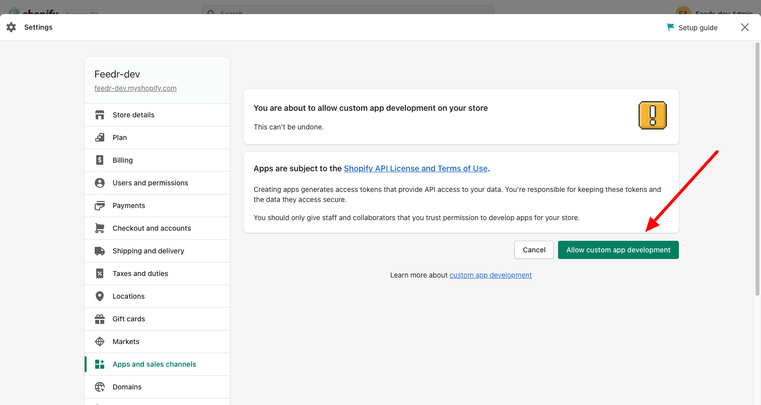 3. Allow custom app development and confirm your choice