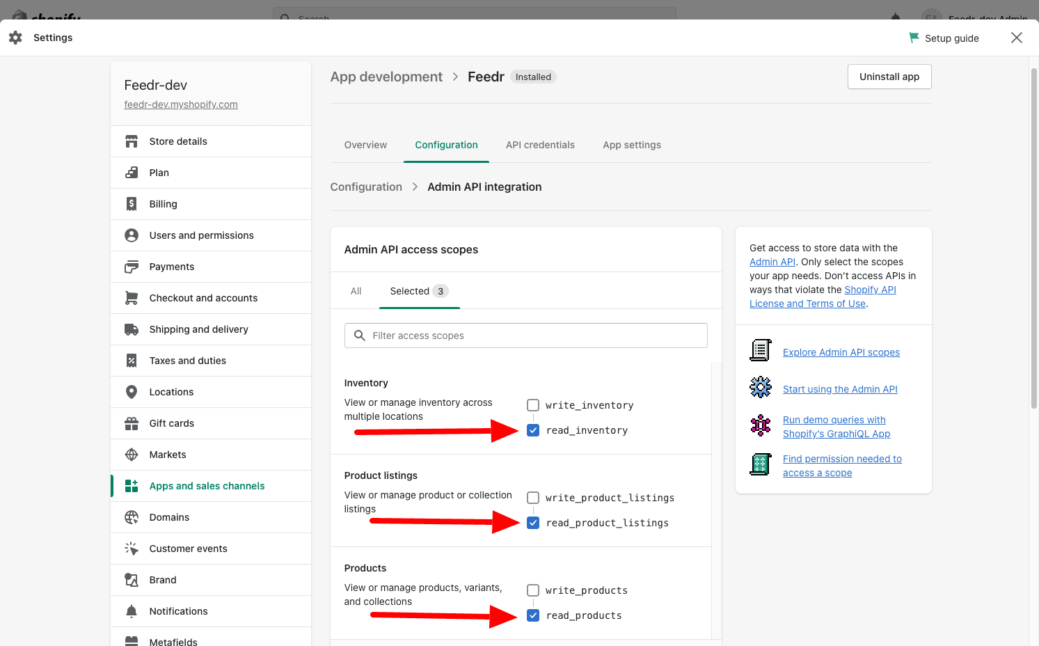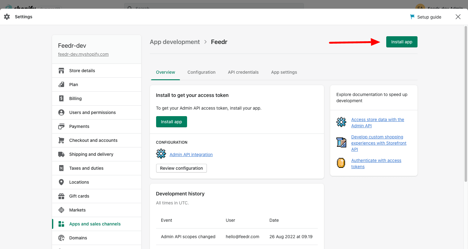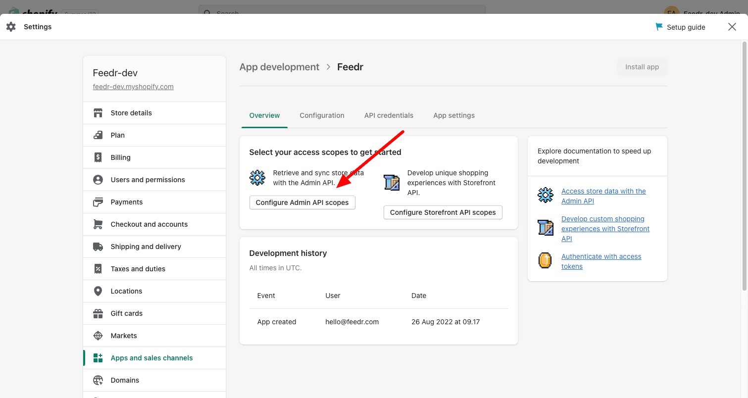 5. On the "Overview"-tab, click on the "Configure Admin API scopes"-button