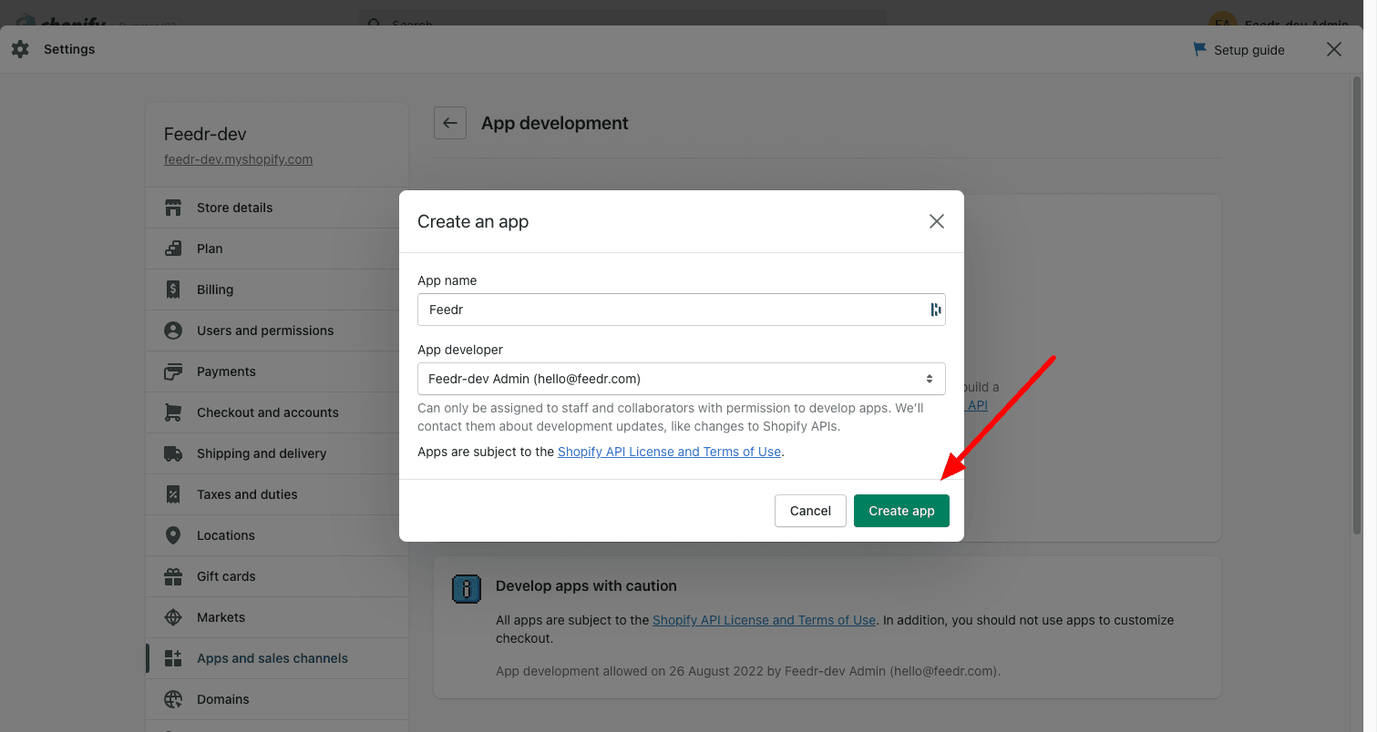 Create Custom app in Shopify