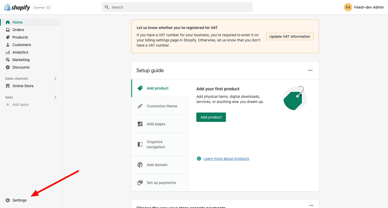 1. Log in to Shopify and click on "Settings"