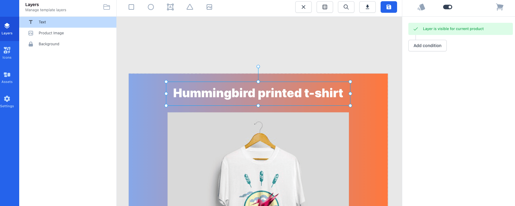 With the condition above the layer will only be visible if the product is on sale. This is useful if you want to show a badge on products that are on sale.